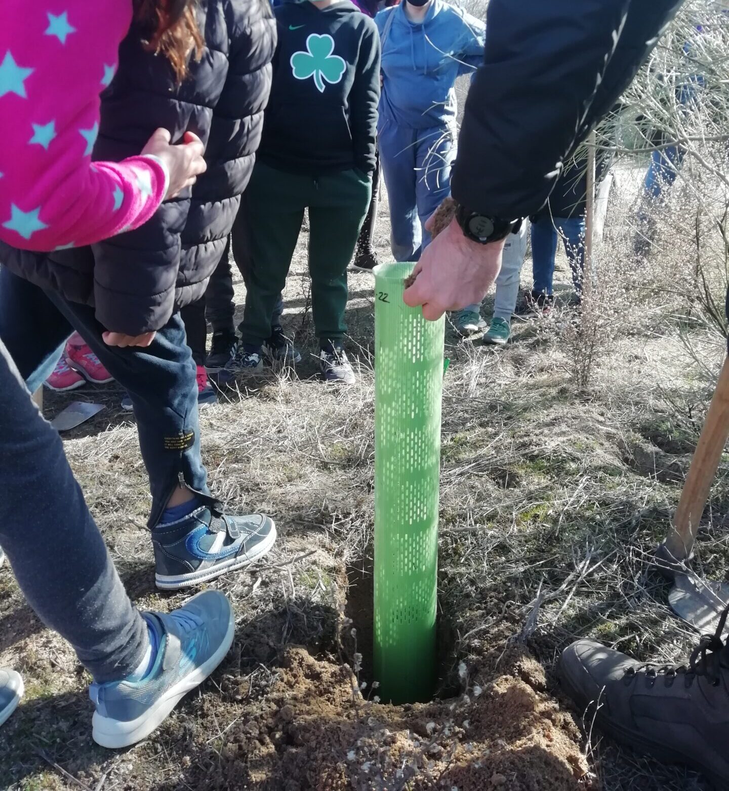 Ruta circular 5km (aprox), explicaciones de nuestra educadora ambiental, siembra de bellotas y colocación de protectores, merienda de mañana tipo picnic